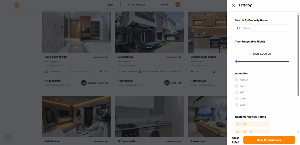 Budget Filter: Set your nightly price range and see options within budget. Whether you’re seeking budget-friendly options under ₦100,000 or premium spaces up to ₦500,000+, our filter respects your financial boundaries.